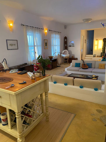 Les splendides intérieurs de Lipsi Heaven interagissent constamment avec le splendide panorama de l'île à travers de grandes fenêtres, des porches et des terrasses.